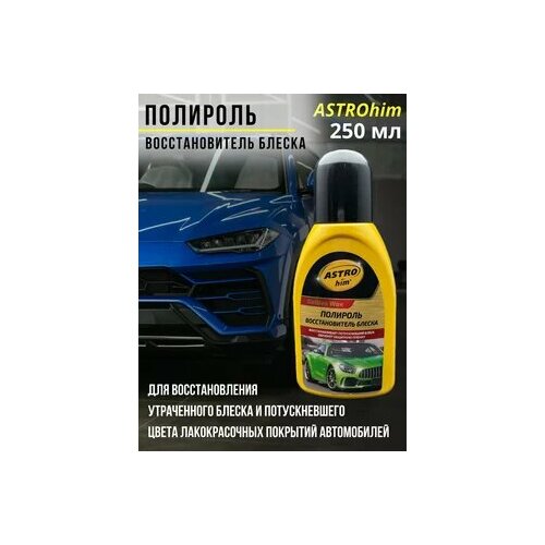 Полироль восстановитель блеска ASTROhim предназначен для восстановления утраченного блеска и потускневшего цвета лакокрасочных покрытий авто. Мягкие абразивы и специальные очистители, входящие в состав, удаляют продукты окисления, поверхностные царапины и микродефекты. Воскополимерная композиция полироля образует защитную пленку, в течении длительного времени выдерживающую агрессивное действие атмосферных осадков, дорожных реагентов и профессиональной химии, применяемой на автомойках. Защищает лакокрасочное покрытие от выгорания. Рекомендации по использованию: вымойте кузов автомобиля автошампунем ASTROhim, протрите кузов насухо замшей или чистой тканью. Хорошо встряхните флакон. Нанесите полироль на лакокрасочное покрытие круговыми движениями с помощью слегка влажной губки. Дайте составу подсохнуть в течении 1-2 минут. Затем отполируйте фланелью или другой мягкой тканью. Рекомендуется обрабатывать кузов постепенно, нанося полироль на небольшие участки. Не наносите полироль на горячую поверхность и под действием прямых солнечных лучей. Рекомендуется полировать кузов при температуре не ниже 10 градусов.