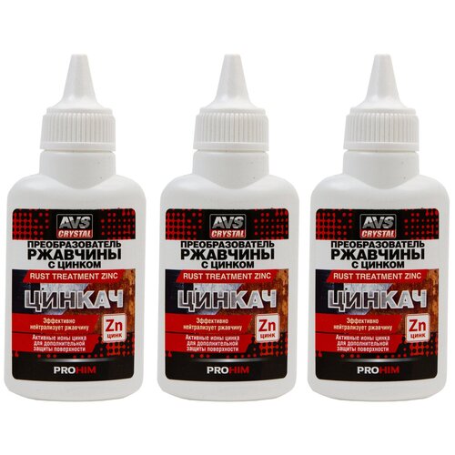 Преобразователь ржавчины с цинком AVS 60 мл. Удалитель ржавчины для авто/тюбик "Цинкач" AVK-190 комплект из 3 шт A07595S(3)