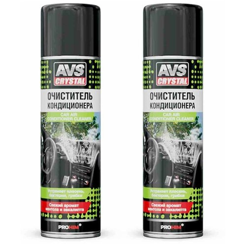 Вы в жаркое время года, все чаще и чаще стали пользоваться автомобильным кондиционером в машине? Но как-то при очередном включении кондиционера в машине Вы почувствовали какой-то слабенький запах пыли и еще чего-то. Произвести плановую очистку системы кондиционирования вам поможет очиститель кондиционера (аэрозоль) 325 мл AVS!Профессиональное средство для очистки и дезинфекции системы вентиляции и кондиционирования автомобиля. Быстро и эффективно устраняет плесень, бактерии, грибки, вызывающие риск развития аллергии и заболеваний дыхательных путей. Образует на поверхности испарителя защитную дезинфицирующую плёнку, которая предотвращает накопление и размножение вредных микроорганизмов, приводящих к возникновению неприятного запаха в салоне. Используется без разборки системы кондиционирования. Оставляет свежий аромат ментола и эвкалипта. Подходит для очистки и дезинфекции бытовых кондиционеров. Рекомендуется применять не реже одного раза в год.Преимущества:Комплект 2 штПрост в применении;Безопасен;Быстро и эффективно устраняет неприятный запах;Обладает бактерицидным и дезодорирующим действием;Предназначен для всех видов транспорта – легковых, грузовых, пассажирских;Восстанавливает свежий и чистый воздух в салоне автомобиля;Используется без демонтажа салонного фильтра и разборки системы кондиционирования;Создает приятную атмосферу в салоне автомобиля, за счет содержания в составе натуральных эфирных масел ментола и эвкалипта.Способ применения:1. Снять салонный фильтр, если система вентиляции им оборудована.2. Включить систему салонной рециркуляции воздуха на полную мощность при минимальной температуре, при этом необходимо выключить кондиционер.3. Хорошо встряхнуть баллон.4. Распылить содержимое баллона при помощи зонда-распылителя, для чего необходимо как можно глубже ввести зонд в дренажную трубу слива конденсата.5. Включить отопление салона на обогрев на 8-10 минут.6. Завершив обработку, необходимо проветрить салон автомобиля.