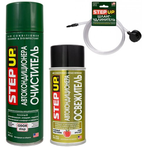Очиститель кондиционера автомобиля и системы вентиляции STEPUP 510 мл + очиститель кондиционера STEPUP 128л + шланг-удлинитель SP5152/SP5150N/SP5154К