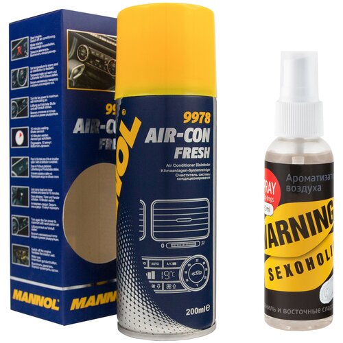 Очиститель кондиционера автомобиля MANNOL Air-Con Fresh 9978 200мл+Ароматизатор для автомобиля/в машину спрей CONTEX WARNING SEXOHOLIC 2149/863s
