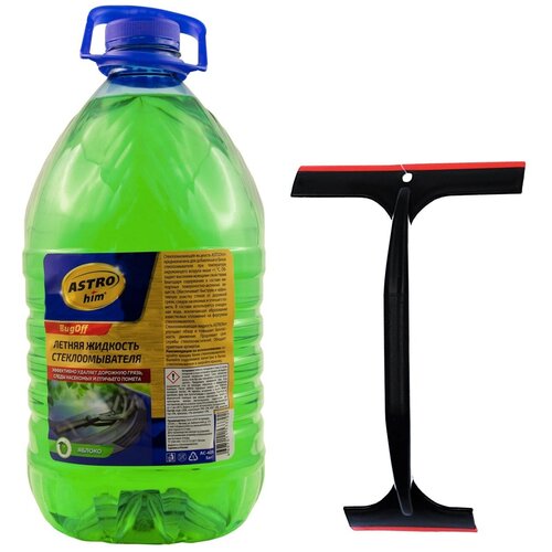 Жидкость стеклоомывателя летняя 5 л ASTROHIM BUGOFF / омывающая жидкость (омывайка летняя) + Водосгон для автомобиля двусторонний NG 25.5х16х9 см. универсальный силиконовый водосгон для стекол и зеркал АС-425/729-011