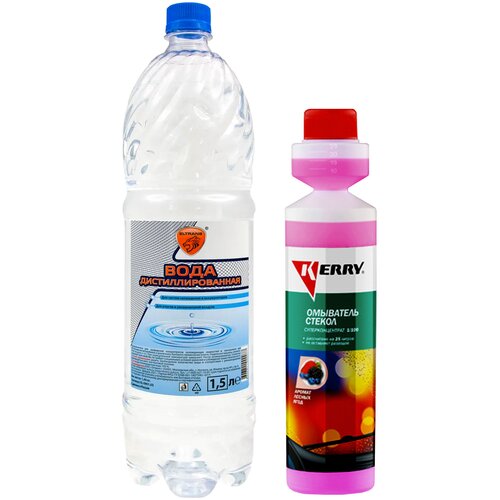 Жидкость стеклоомывателя летняя 270 мл KERRY / омывайка летняя с ароматом лесных ягод + Вода дистиллированная ELTRANS, 1.5л; KR-337/EL-0901.03