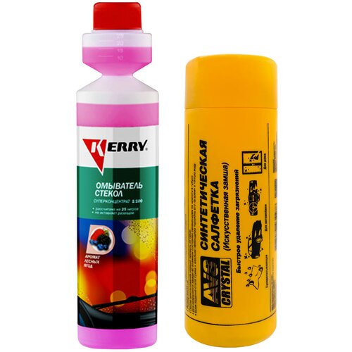 Жидкость стеклоомывателя летняя 270 мл KERRY / омывающая жидкость с ароматом лесных ягод (омывайка летняя), суперконцентрат + Замша для автомобиля (Искусственная замша в тубе 43*32см) CH-4332A AVS - замшевая тряпка для авто; KR-337/A80782S