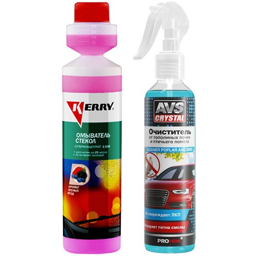 Жидкость стеклоомывателя летняя 270мл KERRY/аромат лесных ягод, суперконцентрат + Очиститель кузова автомобиля 250мл AVS AVK-057 KR-337/A07484S