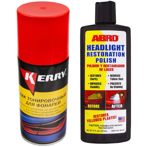 Полироль для фар ABRO Реставратор фар 237 мл. + Лак для тонировки фар автомобиля KERRY 210 мл / лак тонировочный для фонарей HR-237/KR-963.2