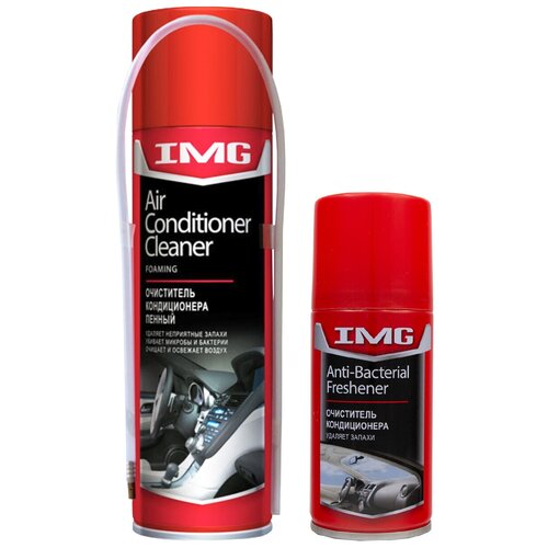 В процессе эксплуатации автомобиля система кондиционирования постепенно забивается пылью и грязью, что нередко приводит к появлению неприятных запахов в салоне автомобиля и создает дискомфорт для автовладельца и его пассажиров. Очиститель IMG поможет Вам эффективно и без разборки очистить систему кондиционирования!Профессиональный пенный очиститель IMG уничтожает болезнетворные микроорганизмы, вирусы, грибки, бактерии, плесень в системе кондиционирования автомобиля. Он образует на обрабатываемой поверхности защитную антибактериальную пленку и уменьшает вероятность возникновения простудных и легочных заболеваний.Очиститель (шашки для кондиционера) IMG эффективно справляется с удалением неприятных запахов в системе кондиционирования авто. Он качественно нейтрализует действие болезнетворных микроорганизмов и устраняет запах плесени, табака, животных и д. Данный очиститель качественно восстанавливает свежий воздух из системы кондиционирования авто.Преимущества пенного очистителя IMG:Прекрасно очищает;Восстанавливает эффективную работу автокондиционера и продлевает срок его службы;Безразборная очистка системы кондиционирования;Имеет приятный цитрусовый аромат;Прост и эффективен в применении;Укомплектован трубкой-шлангом;Антибактериальный;Прекрасно очищает.Преимущества шашки для кондиционера IMG:Используется без демонтажа салонного фильтра и разборки системы кондиционирования;Улучшает качество воздуха в салоне;Устраняет неприятные запахи;Эффективен в применении;Легок в использовании.