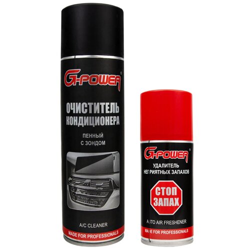 В летнюю жару кондиционер является незаменимой вещью для каждого автовладельца. В условиях активного использования на испарителе кондиционера образуется конденсат. Его появление, помимо чисто практической пользы, имеет и негативную сторону — в условиях постоянной влажности на испарителе начинают активно размножаться бактерии, что со временем может стать причиной появления неприятного запаха в салоне авто. Комплект, состоящий из очистителя кондиционера автомобиля (шашка для кондиционера) G-POWER и пенного очистителя кондиционера автомобиля и системы вентиляции G-POWER, поможет Вам эффективно и без разборки очистить систему кондиционирования!Очиститель (шашка для кондиционера) G-POWER качественно устраняет неприятные запахи в системе кондиционирования автомобиля. Шашка обладает бактерицидным действием. Он восстанавливает свежий воздух из системы кондиционирования. А для его применения не потребуется специальных навыков или дополнительного оборудования.Пенный очиститель кондиционера G-POWER предназначен для качественной очистки и дезинфекции автомобильных и бытовых систем кондиционирования, включая испаритель кондиционера и каналы воздуховодов. Он с легкостью растворяет и смывает различные загрязнения, уничтожает вредные бактерии, грибки и микроорганизмы в системе кондиционирования автомобиля, устраняет неприятные запахи и причину их появления. Преимущества шашки для кондиционера G-POWER:Эффективное средство;Устраняет неприятные запахи;Нейтрализует источники неприятных запахов;Освежает и дезодорирует воздух в салоне авто;Восстанавливает свежий и чистый воздух в салоне автомобиля.Преимущества пенного очистителя G-POWER:Эффективное средство;Устраняет неприятные запахи;Шланг-удлинитель в комплекте;Нейтрализует источники неприятных запахов;Восстанавливает свежий и чистый воздух в салоне автомобиля.
