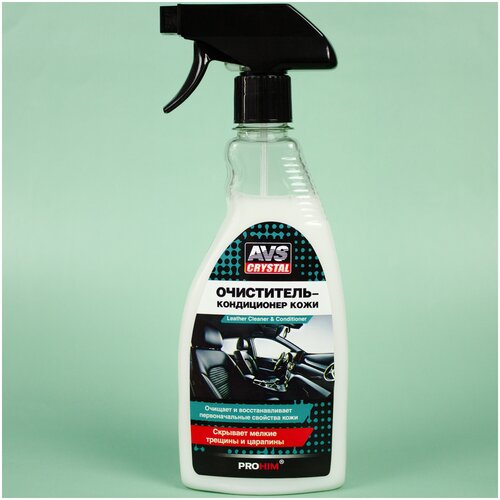 Без правильного ухода кожаный салон авто со временем теряет презентабельный внешний вид. На нем появляются микротрещины, которые в последствии забиваются грязью.Очиститель-кондциионер кожи салона AVS позволяет сохранить чистоту внутренней части машины, а также придать свежесть чехлам и автомобильной обивке.Триггер имеет 2 вида распыленияСкрывает мелкие трещины и царапиныОчищает и восстанавливает первоначальные свойства кожиОчиститель кожи салона автомобиля AVS жидкость белоснежного цвета в флаконе объемом 500 мл с удобным тригером, предназначена для бережного эффективного ухода за кожаной обивкой салона автомобиля, мотоцикла, а так же кожаной мебели и кожаных вещей используемых в быту. Удаляет стойкие загрязнения различного происхождения, не повреждая структуру поверхности. Образовывает тонкую защитную пленку, которая не дает влаге проникать внутрь материала. Кондиционирующие добавки, входящие в состав, восстанавливают деформацию, растрескивание и сухость кожаных поверхностей. Важную роль играет глицерин, который содержится в составе препарата. Применять средство можно для удаления грязи с разных видов кожи и кожзаменителей. Обладает нейтральным, не раздражающим приятным ароматом.Обеспечивает грязе- и водоотталкивающие свойстваНе оставляет жирных следов и не изменяет естественного блеска кожиОбладает приятным ароматомУдобно распыляется, так как оснащен 2 видами распыления, может подаваться мощной струей и облаком, поэтому с нанесением состава на обрабатываемую поверхность не возникает никаких проблем, в том числе, и в самые труднодоступные места. Средство помогает продлить срок эксплуатации обивки и придает красивый вид салону. Для удобства использования распылитель устанавливается в 3 вида положения:«SPRAY» – средство распыляется облаком;«STREAM» – средство поддается струей;«OFF» – блокираторПодходит для всех видов гладкой кожиУдаляет стойкие загрязнения различного происхожденияУвлажнять кожаное покрытие и насыщать питательными веществами