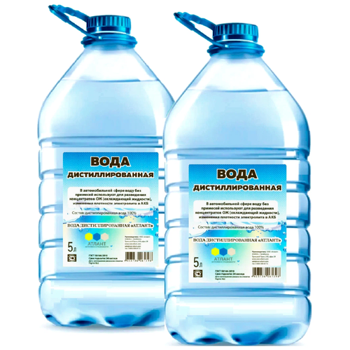Вода дистиллированная атлант Две бутылки по 5 л (10л) для аккумулятора, утюга, отпаривателя, концентратора кислорода, и других целей