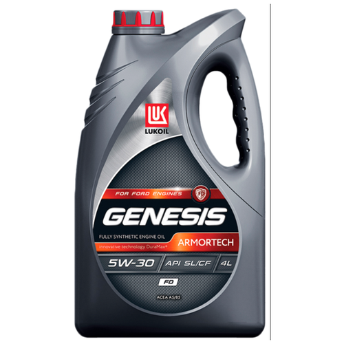 ЛУКОЙЛ GENESIS ARMORTECH FD 5W-30 - синтетическое моторное масло для современных бензиновых и дизельных двигателей легковых автомобилей, в том числе с турбонаддувом. Сделано с использованием передовой технологии DuraMax®.ЛУКОЙЛ GENESIS ARMORTECH FD 5W-30 рекомендовано для всесезонного использования в бензиновых и дизельных двигателях автомобилей Ford, Jaguar, Land Rover, а также в бензиновых двигателях автомобилей Renault, в гарантийные и другие периоды. Также подходит для использования в двигателях других производителей автомобилей, требующих масел API SL, ACEA A1 / B1, A5 / B5 и класса вязкости SAE 5W-30.