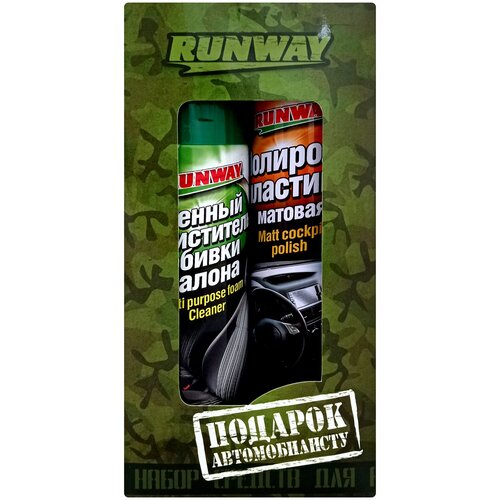 Что подарить мужчине-мужу, другу, коллеге , дедушке , автолюбителю, автовладельцу, парню на 23 февраля или просто так, без повода ? Подарочный набор профессиональной автохимии и автокосметики от производителя "RUNWAY" станет отличным решением ! Очиститель обивки салона предназначен для удаления разнообразных загрязнений и пятен с изделий из ткани, велюра, ковровых покрытий и т. п. Быстро удаляет даже глубоко въевшуюся грязь. Удаляет неприятные запахи и освежает воздух в салоне автомобиля. Придает материалам антистатические свойства. Удаляет большинство свежих пятен от чая, кофе, молока, соков, крови, губной помады, машинного масла и т. д. Полироль пластика матовая предназначена для очистки, обновления и защиты панели приборов, обивки из винила, кожи, пластика, дерева. Предохраняет их от старения и растрескивания, восстанавливает структуру. Прекрасно защищает от пыли, грязи и засаливания. Используется для автомобилей и в быту- для обновления кожаной мебели, обуви, сумок и т. д