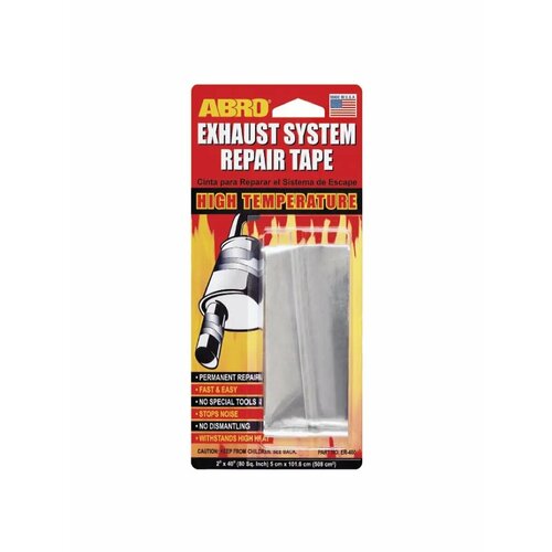 Бандаж глушителя; ABRO.Предназначен для ремонта и герметизации выхлопной системы, в том числе глушителя, расширительных баков.свойства• Предотвращает выделение вредных газов из негерметичных выхлопных систем.• Уменьшает шум и устраняет прорыв выхлопных газов.• Выдерживает температуры до 400˚С.• Удобен, прост и экономичен в использовании.• Не воспламеняется и не растворяется в воде.• Не содержит асбест.• Размер: 5 см x 101,6 см.
