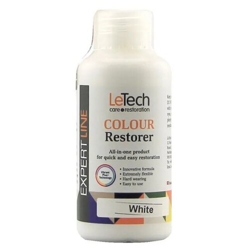 Восстановитель цвета кожи, белый, жидкая кожа для обуви, одежды LeTech Leather Colour Restorer White, 100мл