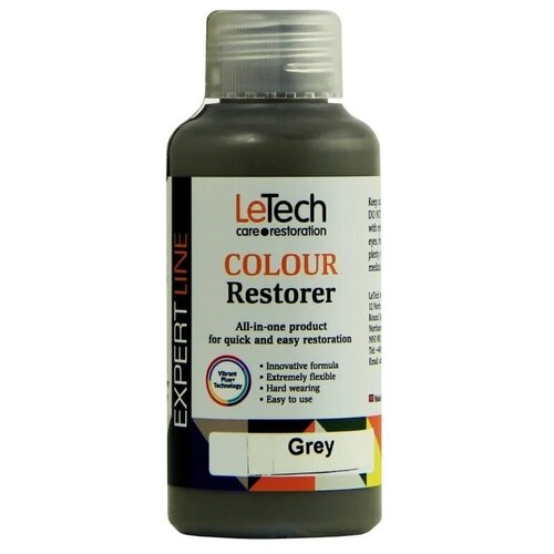 Восстановитель цвета кожи, серый, жидкая кожа для обуви, одежды LeTech Leather Colour Restorer Grey, 100мл