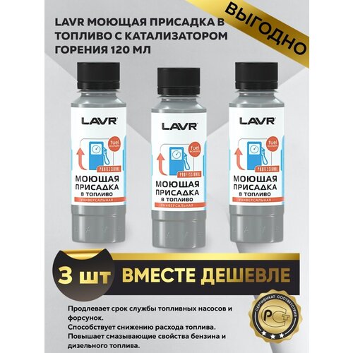 Моющая присадка в топливо с катализатором горения Lavr 120 мл Ln2126 эффективно удаляет нагар и отложения из камеры сгорания. Продукт способствует снижению расхода бензина и дизеля, придает топливу моющие свойства и очищает всю топливную систему. Входящие в состав компоненты смазывают внутренние детали, увеличивают срок эксплуатации насоса и форсунок.