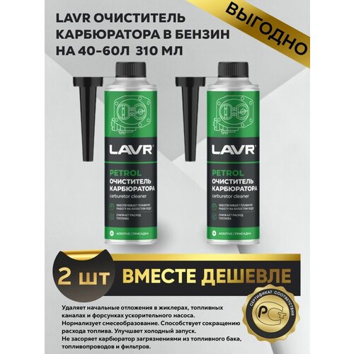 Очиститель карбюратора Lavr присадка в бензин 310мл 2штуки