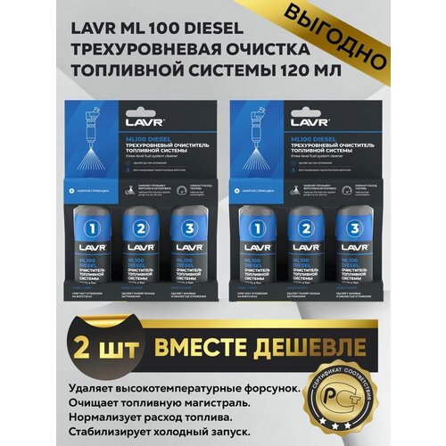 Очиститель топливной системы ML100 DIESEL для дизельных двигателей - это трехкомпонентная присадка для последовательного добавления в топливный бак. Состав 1 удаляет рыхлые загрязнения и нагары на клапанах и форсунках. Состав 2 с запатентованными компонентами LAVR DSP DET выводит лаковые и смолистые отложения из топливной системы. Состав 3 смазывает, защищает от коррозии и появления новых загрязнений. Применяется для всех типов систем впрыска дизельных двигателей.