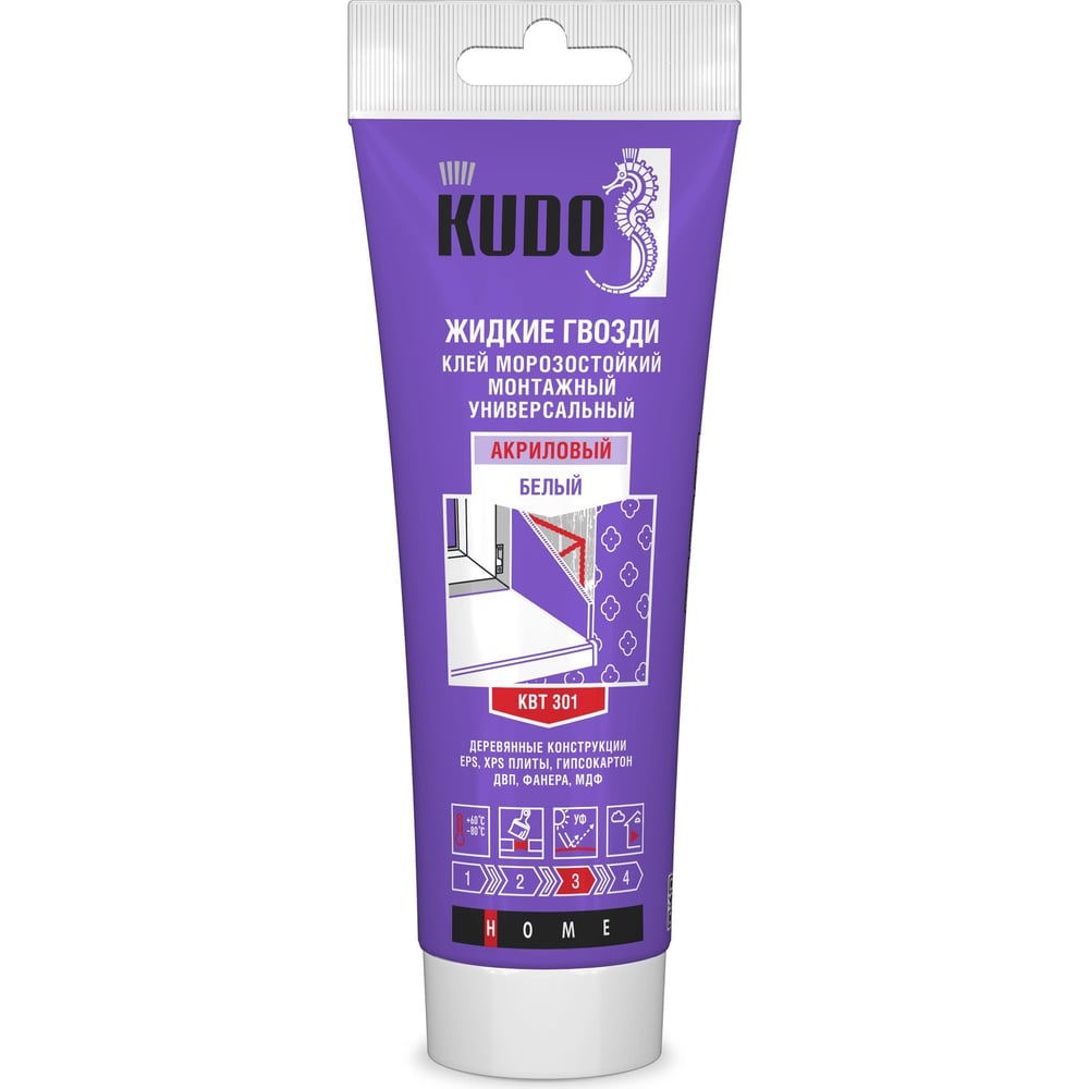 | Клей монтажный универсальный морозостойкий Kudo KBT-301, акриловый, 280 мл, белый | ||||