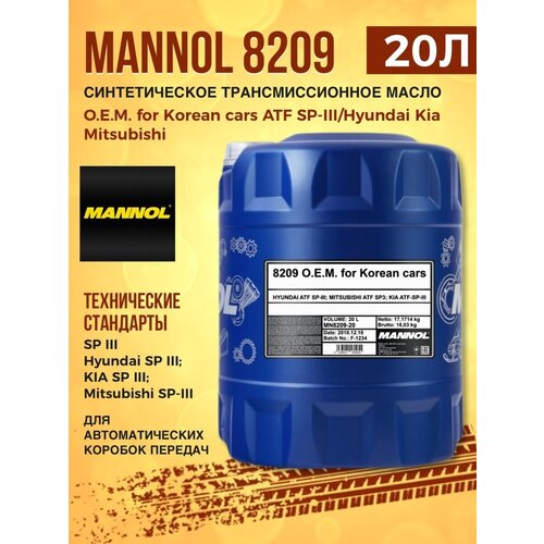Жидкость трансмиссионная MANNOL 8209 ATF SP-III 20л