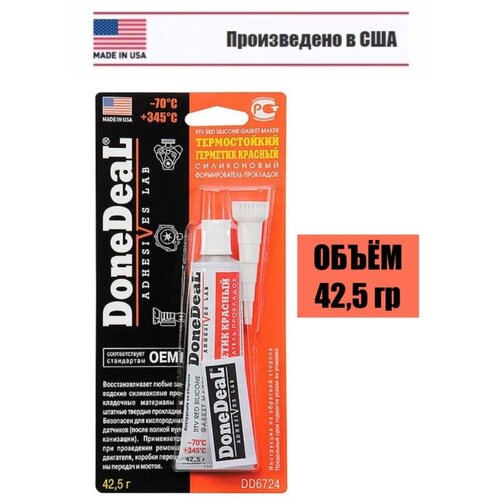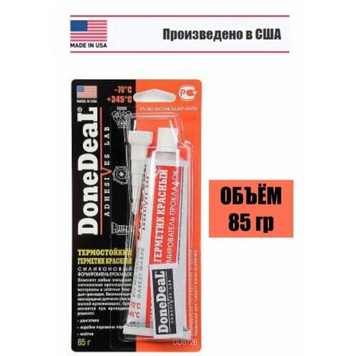 Термостойкий силиконовый формирователь прокладок Done Deal красный DD6726 (85 г) или DD6724 (42,5 г) применяется для ремонтно-монтажных работ узлов и агрегатов двигателя, трансмиссии, подверженных повышенным рабочим температурам. Герметик способен заменить силиконовые прокладочные материалы, штатные твердые и резиновые прокладки. Дополнительное нанесение на штатные прокладки улучшает их термостойкость. Может использоваться на современных автомобилях, оснащенных кислородными датчиками (автомобиль может эксплуатироваться через 10-12 часов). Устойчив к перепадам температур и вибрации. Рабочий диапазон температур: от -70 до +345 С. Сокращенное время вулканизации увеличивает производительность ремонтных работ. Не рекомендуется длительный контакт с бензином. Не приводит к коррозии деталей из стальных, чугунных или алюминиевых сплавов. Герметизации ответственных узлов, где недопустимо нарушение герметичности. Время схватывания 10 минВремя отвердевания 10-12 часовВремя полимеризации 12 часов