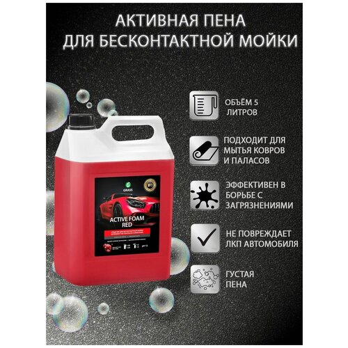 Активная пена Active Foam Red \- концентрированное слабощелочное средство для бесконтактной мойки автотранспорта\. Пена удаляет грязь\, пыль\, масло\, следы от насекомых\. Высокопенное концентрированное слабощелочное средство для бесконтактной мойки любого автомобиля\. Активная пена \(Active Foam\) легко удаляет дорожную грязь\, пыль\, масло\, следы от насекомых\. Создает стойкую обильную пену\, которая легко смывается с поверхности\. Наносится с помощью пенораспылителя\, пеногенератора для мойки\, пенокомплект\, мойки высокого давления придает блеск\, не причиняет вреда лакокрасочным поверхностям\. Бесконтактный автошампунь 5л справится с загрязнениями после дождя и оставит блеск и сияние вашего автомобиля на долгий срок\. Обладает эффектомиснежных хлопьев\. безопасен для детей\. Входящие в состав поверхностно активные вещества обладают умеренным пенообразованием и отличными моющими свойствами\, не повреждая при этом лакокрасочную поверхность автомобиля\. После мойки рекомендуется использовать воск\, полироль и антидождь\, не портит наклейки на автомобиле\. Шампунь для мойки\. Состав содержит компоненты\, придающие блеск и антистатический эффект очищенной поверхности\. Рекомендуется применять как первичный состав для 3х фазной мойки\. Автохимия Шампунь для мойки Шампунь для автомобиля Пена для машины Шампунь для машины Автомобильная мойка Автошампунь для бесконтактной мойки Пена для мытья машины Шампунь автомобильный Пеногенератор Мойка высокого давления Мойка авто Мойка для автомобиля\. Бытовая химия также представлена следующая: средства для стирки\, жидкости для уборки\, гели для уборки\, жидкое мыло и спреи для уборки в магазине Benefit\. Активная пена АВС без труда удалит любую дорожную пыль, грязь, масло (антижир), следы от насекомых, подходит для очистки дисков, стекол, пластика и металла. Пена для мытья машины содержит антикоррозийные добавки, легко смывается, не причиняя вреда лакокрасочным и другим видам покрытий автомобилей. Активная пена для бесконтактной мойки подходит для мойки легковых и грузовых автомобилей, автотранспорта, мототранспорта в любой сезон, как на автомойке, так и для личного использования. Авто химия для автомобиля замедляет коррозию на кузове авто и предотвращает ржавчину. Бесконтактный автошампунь 5л справится с загрязнениями после дождя и оставит блеск и сияние вашего автомобиля на долгий срок. Шампунь для машины - подходит для использования в домашних условиях и МСО. Наша автохимия автокосметика для ухода за автомобилем - прекрасный вариант на подарок. Автопена – это концентрат, разбавляемый непосредственно перед использованием. Рекомендации к применению бесконтактного шампуня: нанести на поверхность в виде раствора или пены. При незначительных загрязнениях допускается нанесение автохимии на сухую поверхность. При использовании пенокомплекта или пеногенератора разбавьте средство мойки автомобиля водой. Пеногенератор-от 1:30 до 1:50 в зависимости от степени загрязнения. Пенокомплект - применяется в готовом виде или в пропорции 1:3 в зависимости от степени загрязнения. Время контакта -от 1 до 3 мин. Не допускать полного высыхания пены. Смыть активную пену струей воды под высоким давлением (не менее 100 бар) с расстояния 15-20 см под углом 45 гр. к поверхности. После мойки рекомендуется использовать воск, пол