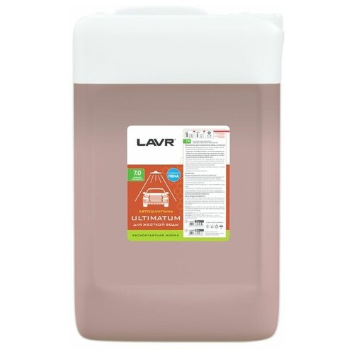Ваш ультиматум мойке в жесткой воде Жесткая вода - не повод для большого расхода моющего средства, если у вас есть автошампунь для бесконтактной мойки ULTIMATUM. Он замечательно пенится и сохраняет моющую активность даже в воде из скважины. Профессиональный шампунь для жесткой воды доказал свою эффективность в частном применении. LAVR ULTIMATUM без следа удаляет грязь, масляные пятна, следы насекомых и другие виды загрязнений легко смывается водой обладает нейтральным запахом безопасен для аллергиков бережно относится к пластику, резине и сплавам цветных металлов. защищает лакокрасочное покрытие от коррозии. За счет смягчающих воду компонентов автошампунь для бесконтактной мойки ULTIMATUM от LAVR идеально подходит для использования в воде из скважины и в межсезонье, особенно во время таяния снега. Состав: Анионные ПАВ 5-15%, неионогенные ПАВ 5%, хелатирующие добавки 5- 15%, регулятор рН 5-15%, краситель 1%, эфир гликоля 5%, вода.