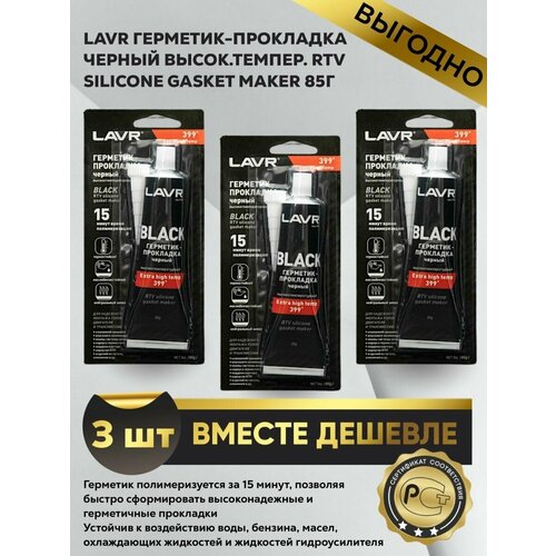 Герметик-прокладка черный высокотемпературный от LAVR полимеризуется за 15 минут и может заменять резиновые, бумажные, металлические прокладки, уплотнители и сальники. Быстрый и сильный состав имеет диапазон рабочих температур от -62 градусов до 399 градусов и подходит для герметизации самых важных узлов. Он не содержит кислот и растворителей, что обеспечивает применение в электрических соединениях и датчиках.