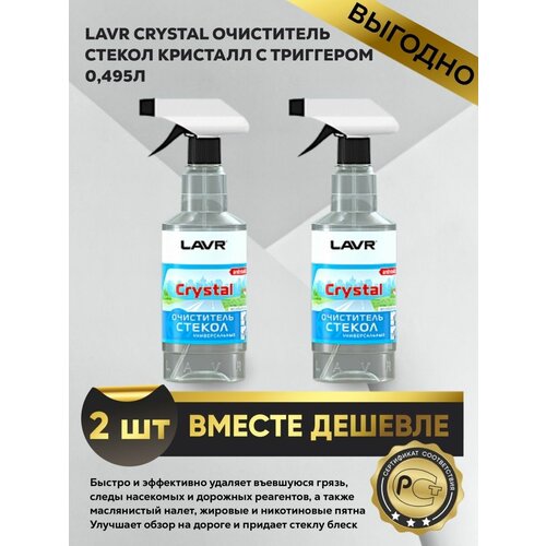 Очиститель стекол Crystal LAVR - жидкость для очистки поверхности стекол, зеркал и фар в автомобилях и в быту. Эффективный состав быстро справляется с удалением загрязнений различного типа, не оставляя разводов. Не воздействует на лакокрасочное и другие покрытия автомобиля.