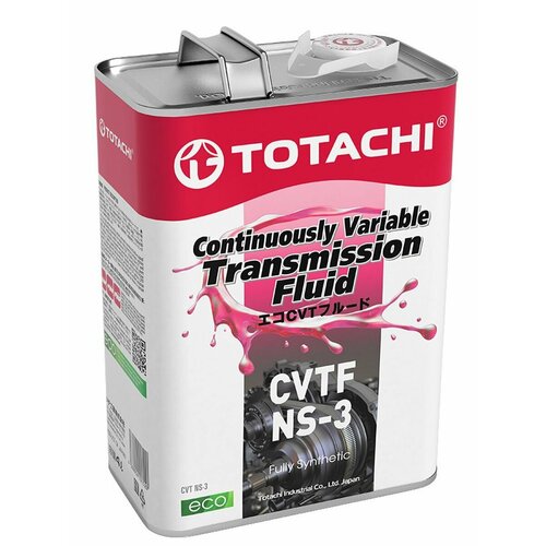 TOTACHI CVTF NS-3 – полностью синтетическая жидкость для автоматических трансмиссий с высокими рабочими характеристиками, разработанная для соответствия строгим требованиям современных азиатских, американских и европейских автомобилей, оснащенных бесступенчатыми вариаторными трансмиссиями (CVT), как с ременными, так и цепными передачами. Продукт обеспечивает повышенную защиту от износа цепей, приводов и подшипников в тяжелых условиях эксплуатации. Превосходные фрикционные характеристики в сопрягаемых металлических деталях способствуют оптимальной топливной экономичности в автомобилях с вариаторными коробками передач. отвечает требованиям: NISSAN CVT NS-3NISSAN 999MP-NS300PNISSAN CVT FLUID NS-3 (KLE33-0002/KLE53-00004)INFINITI NS-3Продукт подходит для использования в автомобилях NISSAN моделей Avenir, Bluebird, Cube, Days Roox, Dualis, Elgrand, Teana, Lafesta, Latio, Liberty, Moco, Murano, Note, Sunny, Sylphy, Tiida, Tino, Wingroad, X-trail, Pathfinder, Serena, Altima, Rogue, Juke, Versa Sedan, Sentra, NV200, и других с требованиями жидкости ATF CVT NS-3.