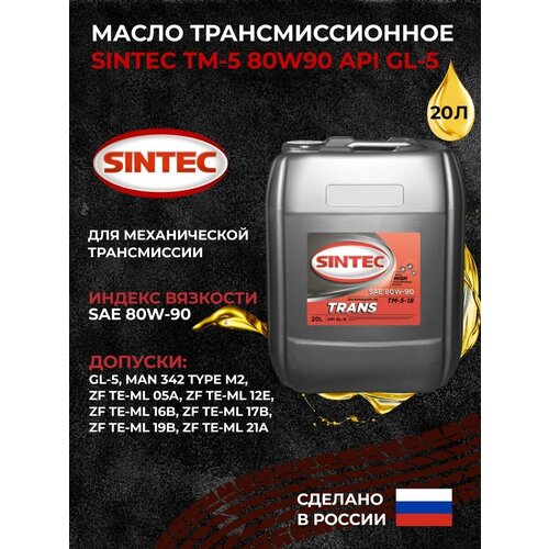 Всесезонное минеральное трансмиссионное масло предназначено для применения в гипоидных передачах легковых и грузовых автомобилей. Для современных механических трансмиссий: переднего и заднего дифференциала, дифференциала ведущей оси, шестерни ступицы переднего моста, передней оси, колесных редукторов сзади и спереди, раздаточной коробки. Для применения в агрегатах, работающих в жестких условиях там, где требуется эксплуатационный класс API GL-5 (ТМ-5). Масло SINTEC TM5-18 (GL-5) SAE 80W-90 изготовлено на основе высокоочищенных минеральных базовых маслах. Тщательно подобранный импортный пакет присадок обеспечивает отличную текучесть и надежную смазку механизмов даже при низких температурах и режиме чрезвычайных нагрузок. Особые фрикционные свойства гарантируют высокую защиту от износа шестерен и подшипников, а также обеспечивают легкое переключение передач.
