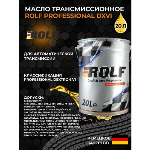Современная многофункциональная жидкость для автоматических коробок передач и гидроусилителей рулевого управления. Производится на основе высококачественных минеральных базовых масел глубокой очистки с высоким индексом вязкости. Содержит высокоэффективные антиокислительные, противоизносные, моющие и противопенные присадки и специальные модификаторы трения. ROLF ATF IID предназначена для использования в автоматических коробках передач со ступенчатым переключением и гидротрансформатором, легковых и грузовых автомобилей различных годов выпуска, городских и междугородных автобусов, дорожно-строительной и муниципальной техники, где рекомендуется использовать жидкости спецификации GM ATF DEXRON IID в автоматических КПП ZF, Voith и других производителей в соответствии со списком соответствий. Допускается применение в гидроусилителях рулевого управления там, где рекомендуется применение жидкостей спецификации GM ATF DEXRON IID.