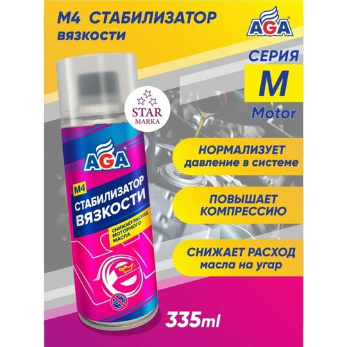 Объем 335 мл. M4 Стабилизатор вязкости AGA904M. Снижает расход моторного масла! Предназначен для повышения (восстановления) вязкости моторного масла в межсменный период в бензиновых и дизельных двигателях. Нормализует давление в системе смазки, повышает компрессию, снижает расход масла на угар. Продлевает срок службы двигателя. Снижает дымность выхлопа. Уменьшает скорость старения масла. Снижает шум работы гидрокомпенсаторов. Препятствует разрыву масляной пленки при высоких нагрузках. Совместим с моторными маслами всех марок. Применение: Применяйте препарат через 5–7 тыс. км пробега после смены моторного масла. Прогрейте и заглушите двигатель. Нагрейте состав до комнатной температуры. Открутите крышку флакона и осторожно удалите защитную мембрану, потянув за кольцо. Залейте состав через маслозаливную горловину из расчета одна упаковка на 3–5 литров масла. Запустите двигатель и эксплуатируйте автомобиль в обычном режиме. Состав: более 30 %: высокоочищенная масляная основа; более 15 %, но менее 30 %: функциональные присадки; менее 5 %: краситель.