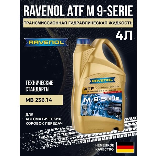 Трансмиссионная гидравлическая жидкость RAVENOL ATF MB 9-Serie произведена в Германии на основе гидрокрекингового базового масла с добавлением полиальфаолефинов и применением специальных присадок. Масло АКПП RAVENOL ATF MB 9-Serie является трансмиссионным маслом и специально разрабатывалось для 7-ступенчатых современных спортивных трансмиссий NAG2VSport, 7G Tronic (722.9/ W7A 700/ NAG2). Рекомендуется также для 5-ступенчатых АКПП (722.6 / W5A 580 / NAG1). Заменяет жидкости предыдущих поколений для 4-х и 5-ти ступенчатых АКПП легковых автомобилей (722.3, 722.4, 722.5), за исключением класса А (W168) и Vaneo (W414) с 5-ти ступенчатой коробкой передач вариаторного типа CVT (722.7 / FAG). Заменяет все предыдущие жидкости и является аналогом оригинального масла Mercedes-Benz A001989680310, A001989450310, A001989210310. Имеет официальный допуск MB 236.14, который перекрывает предыдущие MB 236.12 и MB 236.10. Применение RAVENOL ATF M 9-Serie обеспечиваетОчень хорошие смазывающие свойства даже при низких температурах в зимний периодСтабильно высокий индекс вязкостиСтабильную масляную пленку на защищаемых от износа деталях при любых экстремальных температурных и эксплуатационных режимах работы двигателяВысокую устойчивость к окислениюКомплексную защиту от износа, коррозии и пенообразованияВысокую стабильность тренияВысокую термическую и окислительную стабильностьПрекрасные охлаждающие свойстваХорошую устойчивость к сдвигуНизкие потери при испаренииНейтральное поведение по отношению к уплотнительным материаламНейтральность по отношению к металлам не из железа