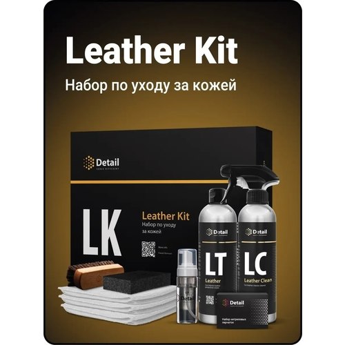 Набор автохимии для ухода за кожей автомобиля, автохимия для салона, LK Leather Kit, 9 предметов Способ применения:1. Нанесите состав Leather Clean на щетку используя пенообразователь Detail.2. Проработайте небольшой участок кожи щеткой, круговыми движениями.3. Протрите очищенный участок влажным микрофибровым полотенцем входящим в комплект.4. После того как кожа немного подсохнет, нанесите средство для защиты кожи Leather на губку. Равномерно распределите состав по поверхности. Избегайте чрезмерного нанесения состава на перфорированную кожу.5. Через несколько минут проверьте обрабатываемую поверхность на предмет наличия излишков состава Leather. При необходимости удалите сухим микрофибровым полотенцем. Применяйте данные продукты для очистки и защиты кожаных поверхностей кожи раз в 3-6 месяцев согласно инструкции. Это сохранит кожаные поверхности в первозданном виде и при этом в дальнейшем их будет легко очистить.