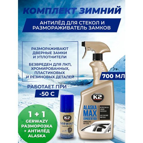 Комплект "K2 Alaska Gerwazy" - антилед для стекол и размораживатель для замков
