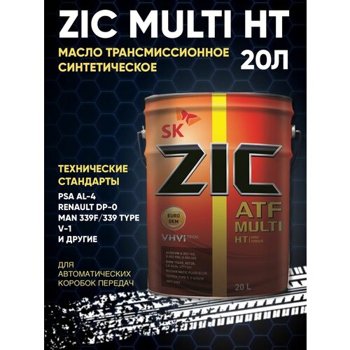 Масло трансмиссионное синтетическое ZIC Multi HT 20л - универсальное полностью синтетическое трансмиссионное масло для автоматических коробок передач различных производителей, в том числе европейских. Изготовлено на основе собственного синтетического базового масла YUBASE.Преимущества Специализированный пакет присадок в сочетании с синтетической основой позволяют превосходить требования большого перечня спецификаций производителей автомобильной техники к маслам для автоматических коробок передач.Высокая прочность масляной пленки и превосходная стабильность к окислению способствует уверенной защите узлов коробки передач в рекомендованных производителем техники интервалах замены масла.