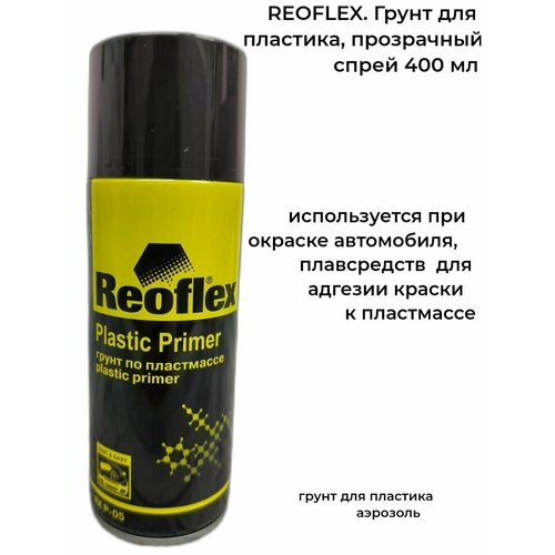 REOFLEX, однокомпонентный адгезионный грунт спрей, ёмкость 400 мл, предназначен для создания адгезии краски к поверхности пластмасс. Грунт спрей REOFLEX используется при окраске деталей автомобилей, плавсредств и любых изделий из пластков. REOFLEX адгезионный грунт спрей, хороший по качеству праймер для основных марок пластика, который исключает отслаивания лакокрасочного слоя с пластиковой поверхности. Наносить грунт спрей REOFLEX одним слоем на поверхность со снятым гляцем абразивными губками (способ "по-сухому") или водостойкой наждачной бумагой Р800 (способ "по-мокрому") а также обезжиренную очистителем силикона. После 5-10 минут выдержки можно наносить акриловый грунт , шпаклёвку, жидкую шпаклёвку. Рекомендуем адгезионный грунт спрей для пластика REOFLEX в профессионально ремонте пластиковых поверхностей.