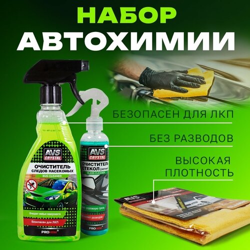 Набор автохимии Очиститель следов насекомых 500 мл, Автостеклоочиститель 250 мл, Салфетка микрофибра