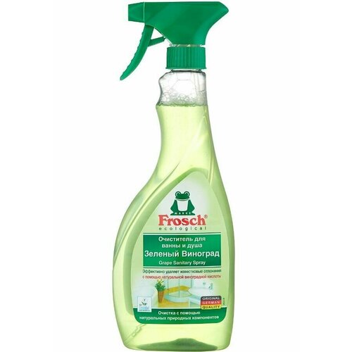 Моющее средство для ванны и душа Frosch отлично снимает известковые отложения, грязь, следы от водяных капель и мыла в ванной и других помещениях, благодаря комбинации чистящих компонентов и натуральной виноградной кислоты. Таким образом, это средство сочетает в себе и сильную очищающую способность, и заботу об окружающей среде. Очиститель для ванны и душа Frosch содержит тензиды, которые разлагаются в почве на 98%, а также: - не содержит фосфатов, формальдегидов устраняет неприятные запахи оставляет после себя приятный фруктовый аромат.