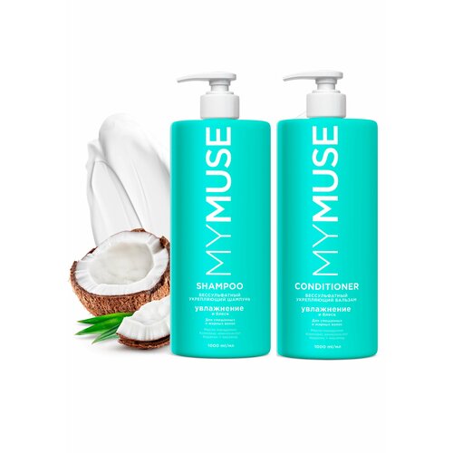 Комплект - Шампунь 1000мл и кондиционер 1000мл MY MUSE. Бессульфатный шампунь с маслом макадамии и ароматом кокоса. Цистеин - защищает фолликулы от окислительного стресса, насыщает волосы серой, которая в свою очередь улучшает их структуру и прочность. Бессульфатный бальзам с маслом макадамии и ароматом кокоса. Цистеин - защищает фолликулы от окислительного стресса, насыщает волосы серой, которая в свою очередь улучшает их структуру и прочность.