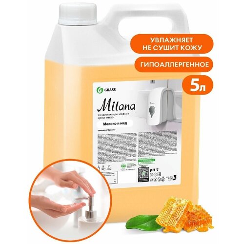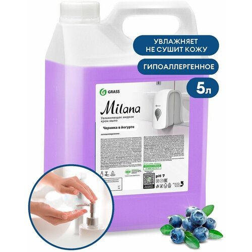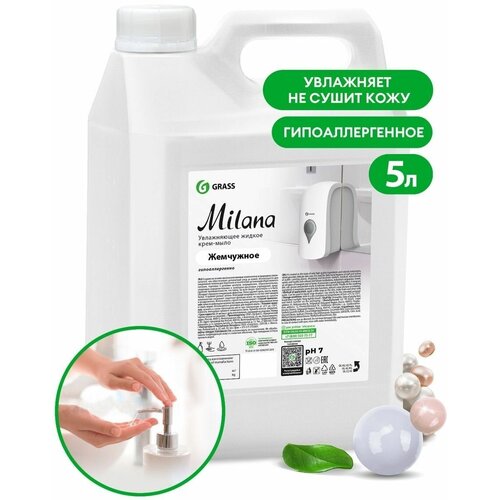 Жидкое увлажняющее крем мыло Milana от компании Грасс.Продукт создан на основе только высококачественных компонентов и природных увлажнителей, что обеспечивает деликатный уход за кожей. Используется для ежедневной гигиены рук персонала и посетителей организаций общественного питания, торговых и деловых центров, медицинских, образовательных, спортивно-оздоровительных и культурно-досуговых учреждений, предприятий промышленности, гостиниц, на всех видах транспорта и в быту. Обладает хорошим очищающим эффектом. Легко удаляет грязь, масла, жиры, белки. Устраняет резкие запахи. Благодаря входящим в состав смягчающим компонентам сохраняет защитные функции кожи, не вызывая ее сухости и раздражения, отлично подходит, как детское мыло. Линейка представлена разнообразными ароматами: жвачка, черешня, жемчужное а так же молоко и мед, алоэ вера, черника в йогурте. Мыло отлично подходит для использования в диспенсерах и дозаторах. Наше мыло отлично дополнит Ваш хозяйственных товаров и бытовой химии для ухода за домом. Большая тара, экономичный расход- мыло прекрасно подойдет на подарок.Способ применения:нанести небольшое количество мыла на кожу, добиться образования пены и смыть водой. Используется в дозаторах жидкого мыла.
