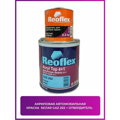 Акриловая краска белая GAZ 202 0,8 кг. + отвердитель 0,2 кг.Краска для автомобиля белая Reoflex GAZ 202 предназначена для окраски кузовов и пластмассовых деталей автомобиля. Она может применяться как для легковых, так и для крупногабаритных транспортных средств.Эмаль обладает высоким блеском, повышенной укрывистостью, прочностью и эластичностью. Быстро сохнет, что позволяет сократить время на покраску и обеспечивает быстрое высыхание при воздушной сушке (16 часов при 20 градусах) или в камере покраски (45 минут при 60 градусах).Краска применяется только с отвердителем, входящим в комплект. До рабочей вязкости разбавляется растворителем на 30%, который не входит в комплект. После сушки, при необходимости, акриловую эмаль можно отполировать.Акриловая краска белая GAZ 202 не требует нанесения поверх неё лака, что делает процесс покраски более простым и быстрым.Выбирая акриловую краску белую GAZ 202 0,8 кг. + отвердитель 0,2 кг, вы получаете качественный продукт от известного бренда Reoflex, который зарекомендовал себя на рынке автомобильных красок.