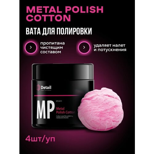 Вата для полировки металла и хрома Metal Polish Cotton. Вата Metal Polish Cotton предназначена для очистки и полировки поверхностей из металла, в частности хрома, нержавеющей стали, алюминия и других металлов. Вата пропитана чистящим составом, что позволяет бережно удалить налет и потускнения с металлических поверхностей, осветлить их и придать блеск. Не применять для пластиковых поверхностей. Способ преминения: 1. Произведите двухфазную мойку при помощи состава для предварительной мойки (Active Safe (AS) или Ultra Safe (US)) и шампуня для ручной мойки без силиконов и усилителей блеска (Second Phase (SP) или Acid Shampoo (AD)), тем самым подготавливая поверхность к обработке ватой. 2. Отделите небольшое количество ваты от основной массы. 3. Обработать металлический участок поверхности. 4. Протрите влажным микрофибровым полотенцем обработанную поверхность.
