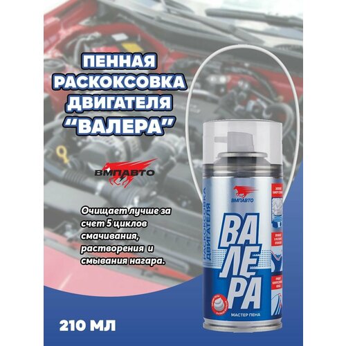 Пенная раскоксовка двигателя ВМПАВТО валера, 210 мл, аэрозоль 8506 - это инновационная пенная раскоксовка для очистки клапанов, впускного тракта, камеры сгорания, компрессионных поршневых колец. Без едкого запаха. Пенный состав предназначен для очистки бензиновых и дизельных ДВС от высокотемпературных углеродистых отложений: нагар, шлам. Удаляет отложения на клапанах, во впускном коллекторе, верхней части поршня, в области первого поршневого кольца. Может использоваться для очистки клапана EGR, турбокомпрессора и иных деталей из алюминия, стали, чугуна. Очищает лучше за счет 5 циклов смачивания, растворения и смывания нагара.