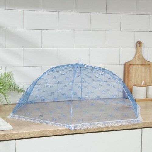Чехол-зонтик (сетка) от насекомых для пищи / Зонт для еды от насекомых 60 х 55 см. / Сетка москитная от насекомых, цвет синий