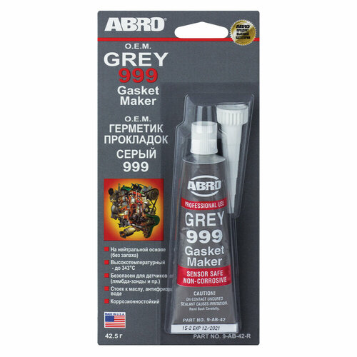 Описание: Силиконовый герметик прокладок ABRO специально разработан для ремонта прокладок в двигателях японских машин, но также может быть использован в двигателях производства США и Европы. Сфера применения: Идеально подходит для замены прокладок в крышке картера коробок передач, корпусов термостата, впускных коллекторов, поддонов картера, водяных помп. Не разрушается под воздействием автомобильных жидкостей (за исключением бензина). Свойства: — высокотемпературный, до +343°С; — безопасен для датчиков (лямбда-зонд и пр.); — стоек к маслу, антифризу, воде; — коррозионностойкий; — на нейтральной основе (без запаха). Основные области применения: — клапанная крышка; — водяная помпа; — поддон трансмиссии. Узнай больше: Как использовать герметик? Незастывший герметик выделяет пары уксусной кислоты и может вызывать раздражение кожи и глаз. При попадании в глаза промойте водой и обратитесь к врачу. Удалите герметик с кожи сухой салфеткой. Используйте при достаточной вентиляции. Беречь от детей! 1. Удалить фрагменты старой прокладки и аккуратно, не поцарапав металл, очистить поверхность от грязи, жира и масла. 2. Держать баллон под углом 45 градусов и наносить по периметру на всю сопрягаемую поверхность, формируя слой толщиной 2–3 мм. 3. Перед сборкой дать просохнуть 10 минут. 4. Сжать обе склеиваемые детали, завинтив крепежные болты. 5. Удалить излишки герметика с помощью сухой салфетки. Не рекомендуется использовать для прокладок головки блока цилиндров. Время склеивания металлических деталей — 1 час. Время полного высыхания прокладки толщиной 0,3 см — 24 часа. Содержимое находится под давлением. Спецификации фирм-производителей: ACURA 08718-550030E, HONDA 08718-5500040E, HC2963817, HYUNDAI 4C116-21000, MITSUBISHI MD997740, MD997110, NISSAN 999MP-A7007, TOYOTA 00295–00102, 00295–01281, 00295–01208. Состав: карбонат кальция, 2-бутанон, кремний, 3-аминопропилтриэтоксисилан, 1-пропиламин. 42,5 г