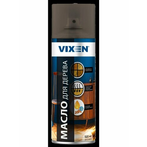 Масло для дерева 520мл бесцветное аэрозоль VIXENПростое в использовании средство для защиты и ухода за древесиной любой породы. Масло эффективно предохраняет дерево от высыхания и защищает от растрескивания.Обработка древесины маслом придает благородный внешний вид обработанным изделиям.