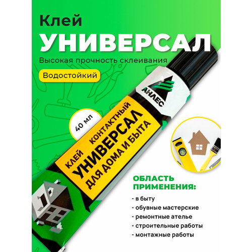 Это самый популярный универсальный водостойкий контактный клей для использования в быту. Клей предназначен для комбинированного склеивания в любом сочетании дерева, металла, ПВХ, кожи, резины, пластиков, стекла, керамики, ткани, бумаги, войлока. Универсальность, высокие технологические свойства, надежная прочность крепления, бюджетная цена делает применение этого клея весьма привлекательным, а в ряде случаев и незаменимым. Клей или жидкие гвозди предназначен для склеивания различных материалов при комнатной температуре и в домашних условиях. Благодаря своему составу этот универсальный бытовой клей легко может стать альтернативой любому клею для ремонта обуви: резиновому клею, обувному клею, клею для полиуретана. В качестве клея для обуви применяется для приклеивания обувных заплаток, отрывающихся элементов, носков, стелек. Применим в качестве клея для кроссовок, легко справится с приклеиванием подошвы кроссовок и другой легкой летней обуви. Универсальный клей может использоваться как клей для кожи, надежно склеит изделия из кожи и кожзаменителя. Этот специализированный универсальный клей применяется также в процессе выполнения любых монтажно-технических и строительных ремонтных работ. Супер клей выполнен на основе синтетических каучуков и специальных усиливающих добавок, обеспечивающих клею дополнительную прочность. Данному клею присущи все свойства и прочностные характеристики универсального клея Момент Классик. Клей имеет бежево-зеленый цвет, однороден по своей консистенции. Основные свойства: 1) высокая прочность склеивания. 2) водостойкость. 3) эластичность клеевого шва. 4) плотность – 0,86 г/см. куб. 4) изделия, склеенные клеем «Универсал» и «Универсальный», предназначены для работы в интервале температур от - 40 до + 70 градусов. Внимание: клей нельзя использовать для посуды, контактирующей с пищей. Клей бытовой поставляется в тубах по 40 мл. Срок годности универсального суперклея – 12 месяцев с даты изготовления. После склеивания обеспечить надежный прижим. Прочность склеивания зависит не от длительности, а от силы приложенного давления.