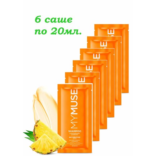 Насыщенный шампунь для активации роста волос MY MUSE(саше объемом 20 мл - 6 шт.) с использованием коллагена предотвращает ломкость и выпадение волос, стимулирует их рост и поддерживает здоровье волосяных луковиц, обеспечивая активное питание и восстановление. Богатые молочные протеины эффективно питают волосы, активизируя их рост и способствуя регенерации. Содержащийся в шампуне сок ананаса обладает высоким содержанием витамина C, а также питательными веществами и минералами. Витамин C, являясь мощным антиоксидантом, противостоит воздействию свободных радикалов, предотвращая выпадение волос. А питательные вещества и минералы обеспечивают усиленное питание и укрепление волосяных луковиц для достижения здорового роста волос.